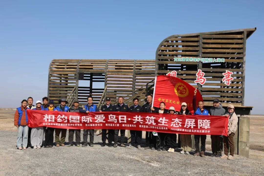4月17日,中央电视台CCTV13新闻频道《新闻直播间》聚焦新疆艾比湖候鸟迁徙季,3万余只候鸟在此栖息育雏,生动展现精河县生态保护扎实成效,也让精河县艾鸟社志愿服务队走进公众视野。一群志愿者扎根戈壁湿地,倾心守护飞鸟灵韵,以志愿微光汇聚生态守护合力,为精河县生态文明建设注入温暖而坚定的力量。