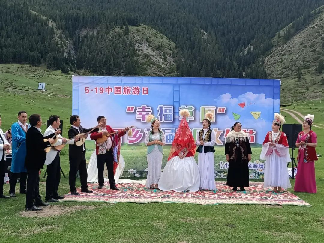 当天,具有浓郁哈萨克族风情的传统婚礼在风景如画的小海子举行。欢快的歌声、浩浩荡荡的迎亲队伍成为草原上一道靓丽的风景线,让游客参与体验了一场真正的哈萨克族传统婚礼。