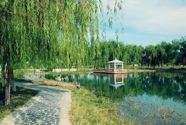 沿着滨河景区河道南行为红柳滩景点,紧邻高速公路,整个景点占地200亩,其中红柳滩150亩,花园50亩,既保护了红柳滩固沙锁水,又改善生态环境,利用卵石做成的花池、坐凳,成为了红柳滩景观带里的一个亮点。花园内种植了波斯菊、香紫苏、三色堇等多种千姿百态、婀娜多姿的花卉,极大地提高了河道景区的观赏性,增添了一道亮丽的风景线。每到春季,花园两侧的桃花、杏花、梨花竞相开放,吸引大批游客前来赏花“打卡”;冬季更有枯枝似白玉般玲珑剔透,不少游人驻足在景色迷人的雾凇景观下,拍照记录这难得的冬日奇观;河道中过冬的天鹅在水中游荡,展现出一幅人与自然和谐、美丽的生态画卷。