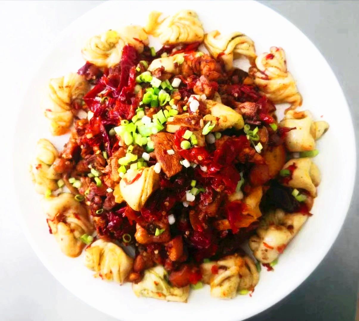 夹一块鸡肉放入口中,香嫩爽滑、劲道、细腻,既有鸡肉的满口生香,还有蒜香、辣香、焦香味掺杂其中,就连鸡骨也能轻易嚼碎,香飘四溢,香辣可口,吃出鸡肉的精髓,畅快淋漓。再吃一口金红油亮辣子皮,味道香辣醇厚,有淡淡的辣味还有丝丝甜味,辣子皮变得软糯香甜,入口即化。此时再配上靳师傅纯手工制作的花卷馒头,好似吃到了吃馍绝配的“辣子酱”,辣的解腻,辣得柔和而不刺激,开胃爽口,妙不可言,真是越吃越有味儿,越吃越想吃,回味无穷,欲罢不能,令人陶醉的美味。