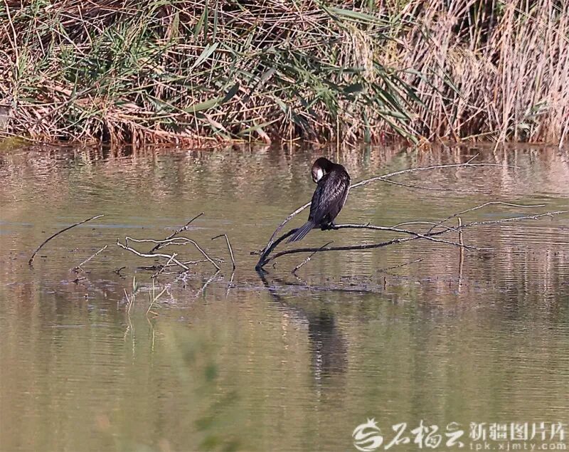 近日,新疆艾比湖湿地国家级自然保护区生态志愿者田向东在保护区内拍摄到珍稀鸟侏鸬鹚。田向东 摄