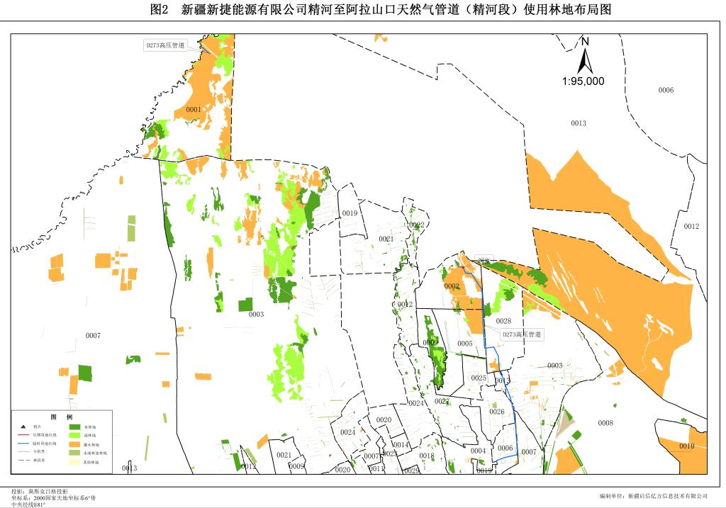 新疆新捷能源有限公司精河至阿拉山口天然气管道拟使用林地位于精河县茫丁乡5个林班26个小班。具体位置如图所示: