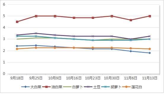 六、大路菜价格与11月6日相比上涨,精细菜价格与11月6日相比上涨