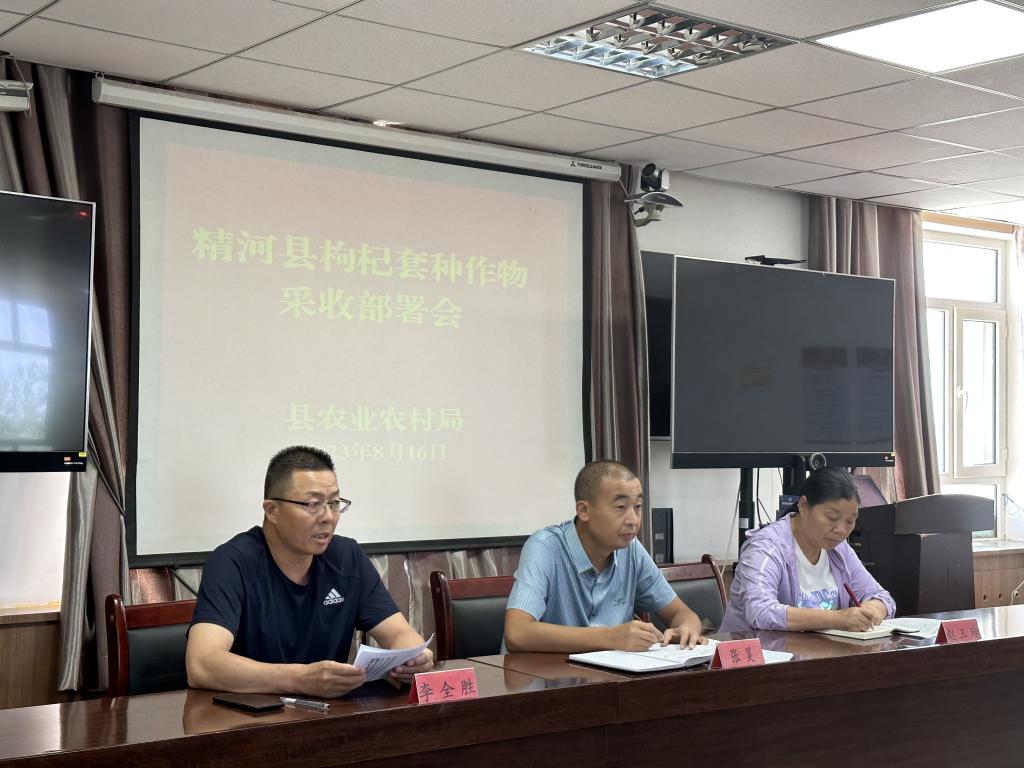 近日,精河县农业农村局召开枸杞套种作物采收部署会,安排部署17个枸杞种植村队套种作物采收筹备工作,精河县农业农村局党组书记张昊主持召开会议。