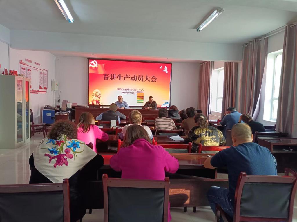 2024年3月5日,精河县农业技术推广中心召开2024年春耕生产动员大会,会议由中心主任车磊主持。全体职工参加。会议内容: