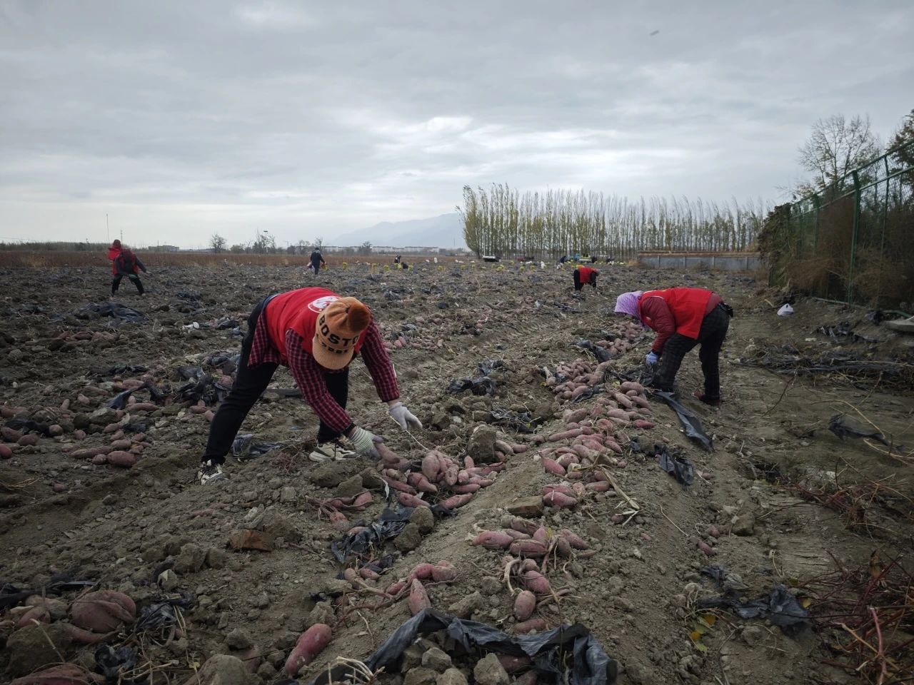 天气转冷,正值红薯收获的季节,11月7日,托托镇托多克村组织党员干部、文明实践志愿者等15人深入田间地头,帮助农户加快采收红薯,切实纾民困、解民忧。