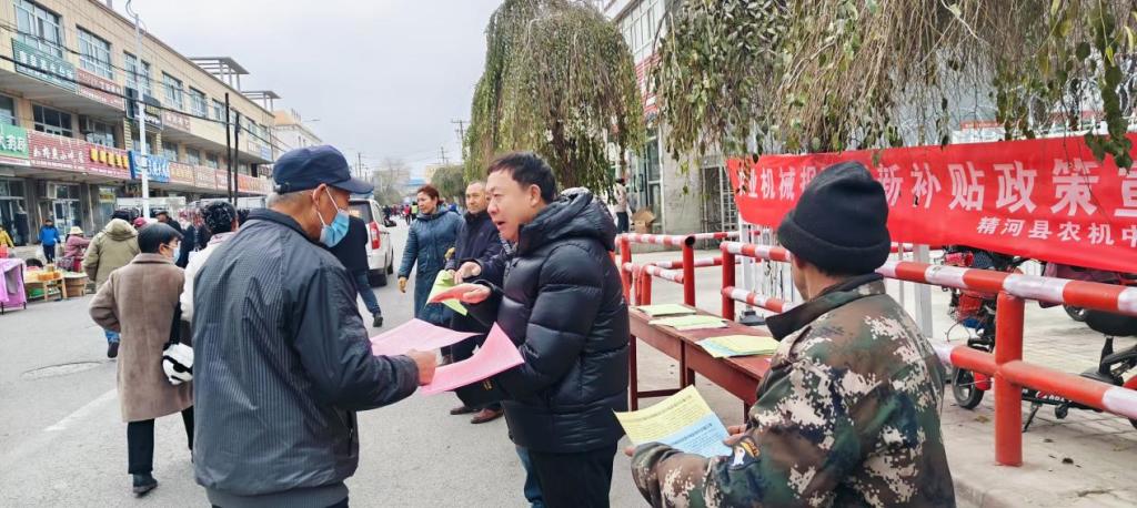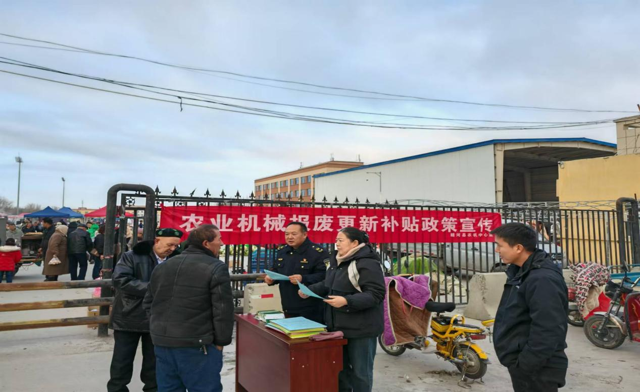 2024年11月24日,精河县农业农村机械化发展中心积极推进农业机械化转型升级,推动农业高质量发展,持续实施农业机械报废更新补贴政策的实施,利用星期日赶集时机在大河沿子镇,茫丁乡农贸市场开展农机报废更新补贴政策宣传。
