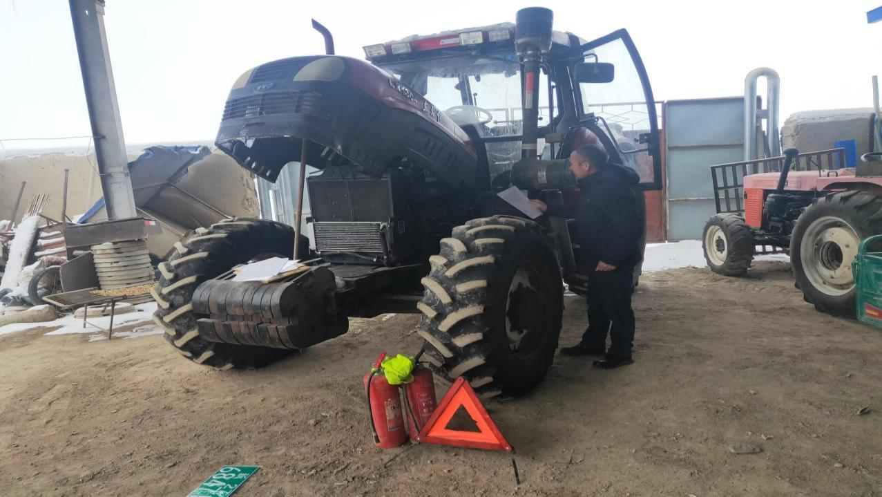 近日气温日渐寒冷,极端天气增多。为有效防范农机安全事故发生,精河县农业农村机械化发展中心充分做好冬季农机安全生产工作、开展安全生产隐患排查治理,严格落实农机安全生产责任。2025年1月3日,精河县农业农村机械化发展中心干部冒着严寒深入基层一线开展农机安全检查,为农机户新购拖拉机办理挂牌服务,为农机户排忧解难。在排查中对农机手开展农机安全生产教育培训,提升了农机手安全意识。
