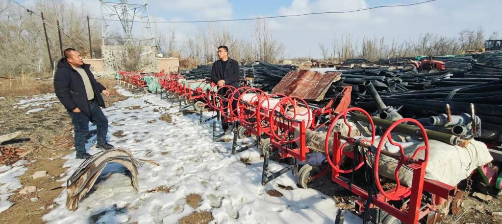 3月6日,精河县农业农村机械化发展中心组织单位技术人员赴兵团胡杨河市124团实地学习,观摩小麦套种玉米各环节农机具、全程机械化新技术新模式。