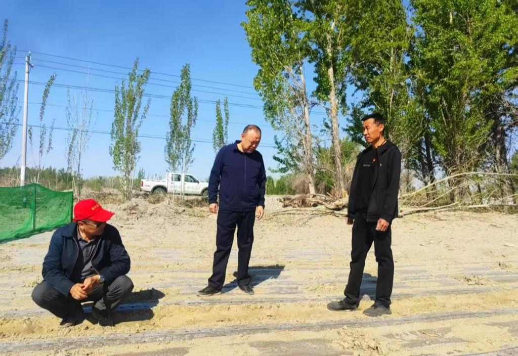 在托里镇,农技人员走进已播棉田,现场查看棉田受损情况,协助农户为吹起的薄膜重新覆土,并针对易受大风影响的田块,提出及时安装防风网的建议。在已播显行棉田中,农业技术推广中心推广研究员张晓东指导农户说:“此次大风可能导致幼苗受损、土壤失水加快,进而影响棉花的出苗率和正常生长,对此你们可以采取增加土壤覆盖物以减少水分蒸发、加固幼苗以防止倒伏。”