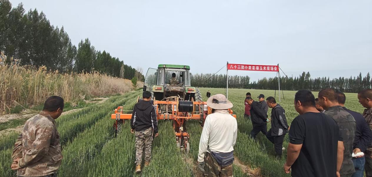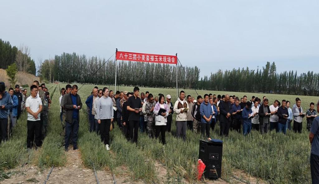 2025年5月28日,兵团第五师八十三团在七连举办小麦套种玉米现场会。第五师、八十三团领导、八十三团各连负责人、技术人员、农机户、小麦种植户共计100余人参加。精河县农业机械化发展中心和县农业技术推广中心技术人员及小麦种植户赴八十三团七连参加此次小麦套种玉米现场会,重点学习播种与收割玉米的先进技术,为全县400亩小麦套种玉米试点工作打牢基础。