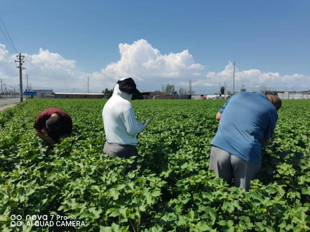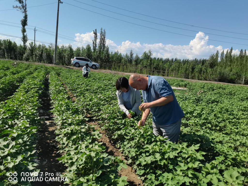 6月17日,精河县农业技术推广中心技术人员走进大河沿子镇额尔森陶勒盖南村“棉花+孜然”套种田地,看到孜然已成熟收割,收成过后的棉田生机盎然,量株高、数果枝台数、查看病虫害与农户交流田管措施。从一粒种子到苗期到蕾期再到花期,农技人员的脚步从春走到了夏、调查的数据记录了一页又一页、田管措施下发了一期又一期,成长变化的是作物的生长,不变的是农技人员对专业技术的追求和科技成果转化运用的热忱。