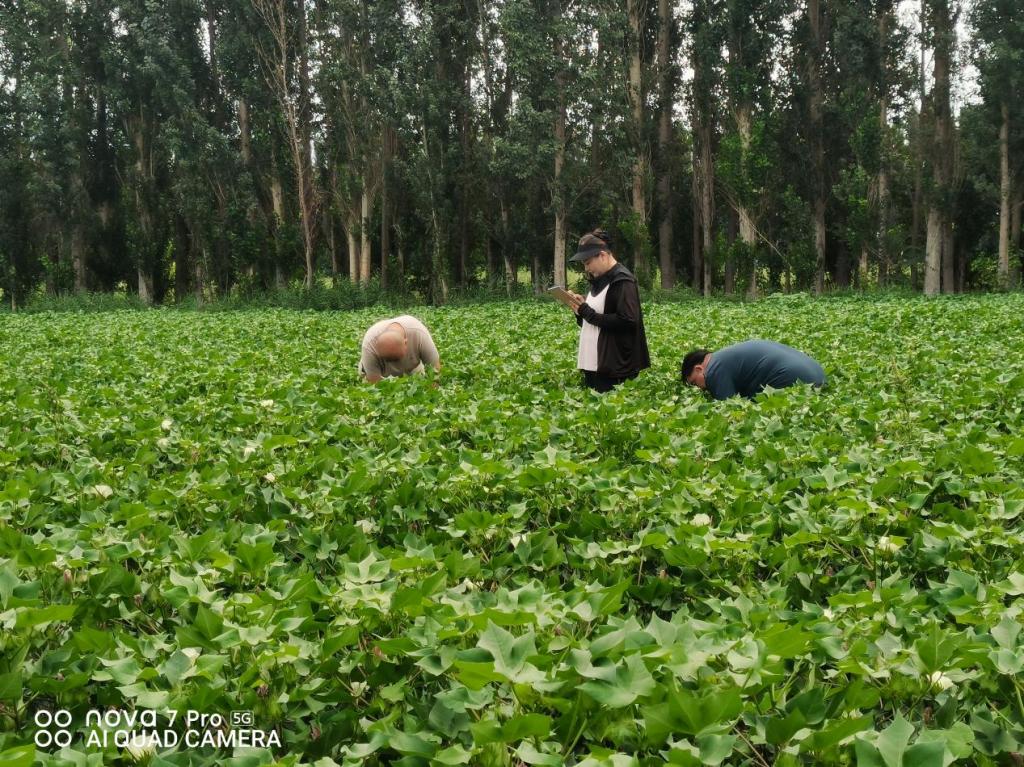 2025年7月15日,精河县农业技术推广中心联合博州农业技术推广中心前往乡镇场开展棉花伏前桃大田调查。此次工作共有十五名技术人员分三组开展观察调查。