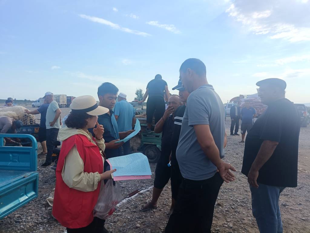 在强化监管的基础上,多部门同步开展法律法规宣传活动,围绕《中华人民共和国动物防疫法》《动物检疫管理办法》《新疆维吾尔自治区畜禽屠宰管理条例》及《病死畜禽及病害动物产品无害化处理管理办法》等重点法规,向在场的养殖场(户)、贩运人员进行细致解读。工作人员结合实际案例,讲解防疫主体责任、检疫程序、病死畜禽处理规范等关键内容,针对性解答从业者在日常操作中遇到的疑问,着力提升其对法律法规的知晓率和执行力。