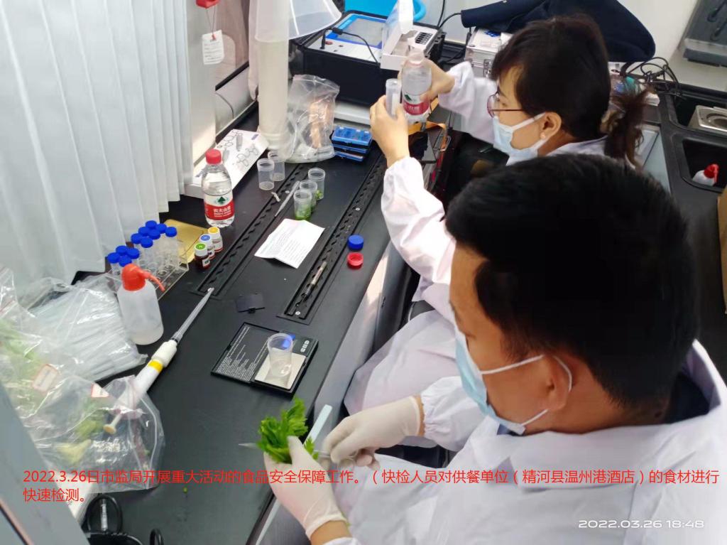 本次检查,对活动定点餐饮服务企业开展食材快速检测7批次,全部为合格。