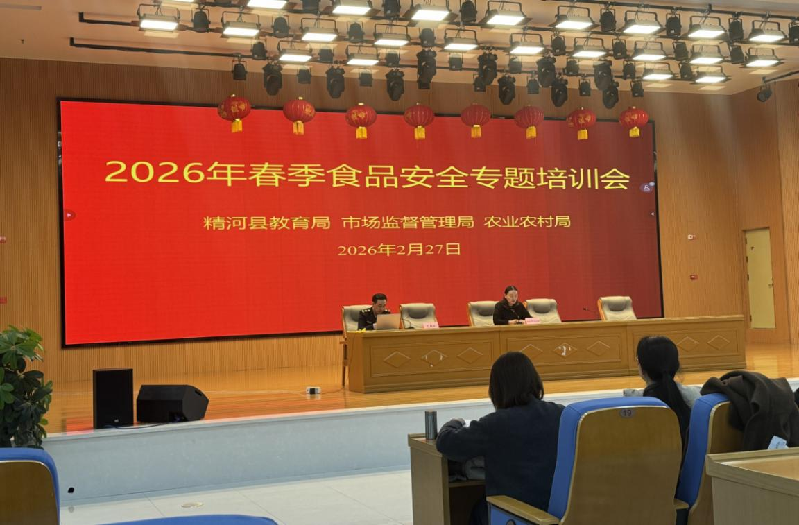 为切实筑牢校园食品安全防线,压实学校食品安全主体责任,保障精河县广大师生饮食安全,2月27日,精河县市场监督管理局、教育局、农业农村局组织全县学校食堂食品安全总监、安全员及食堂从业人员等开展2026年全县中小学幼儿园春季食品安全专题培训会。