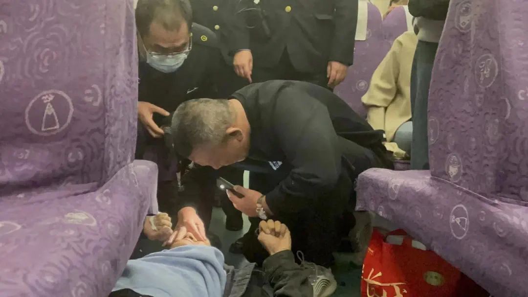 “旅客朋友们,12号车厢有一名旅客突发疾病,如果您是医护工作者,请到12号车厢帮助救治……”