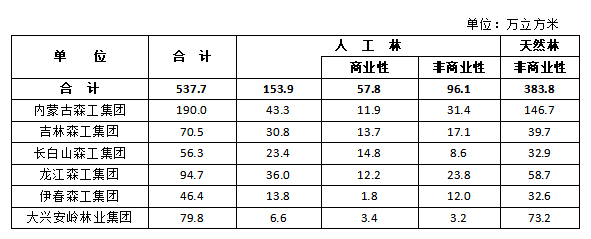 注:1.商业性采伐是指以取材为主要目的的采伐。上表中商业性采伐限额为人工林主伐限额。