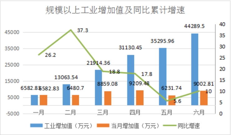 上半年,全县规模以上工业企业实现增加值4.43亿元,比上年同期增长10%,增幅较1季度下降8.8个百分点。