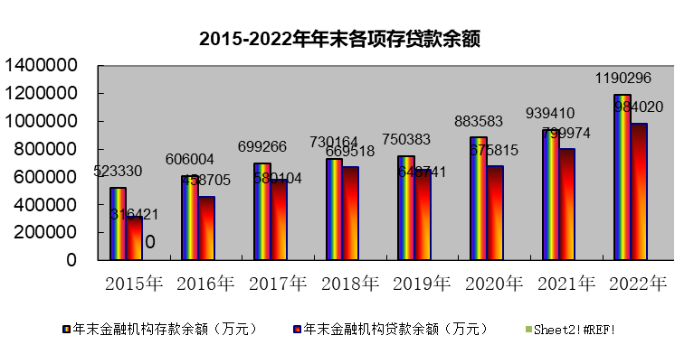 2022年末精河县地方金融机构各项存款余额达119.03亿元,同比增长26.7%;其中,住存款余额75.47亿元,同比增长13.1%,非金融机构存款余额27.69亿元,同比增长84.1%;金融机构各项贷款余额为98.40亿元,同比增长23%,其中,住户贷款余额18.53亿元,同比增长22.1%,企(事)业单位贷款余额79.87亿元,同比增长23.2%。