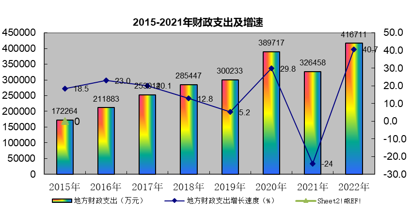 2022年,精河县地方财政支出累计完成416711万元,同比增长40.7%,其中,公共财政预算支出完成268901万元,同比增长1.2%,民生类支出累计出199036万元,同比增长2.9%,占公共财政预算支出总额的74%。