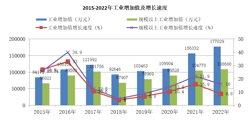 全年全部工业企业增加值完成17.7亿元,比上年增长8.8%,其中,精河县地方28家规模以上工业实现增加值10.87亿元,同比增长16%,分轻重工业来看,轻工业增加值实现4.83亿元,同比增长11.7%;重工业增加值实现6.04万元,同比增长19%。其中,采掘业增加值0.85亿元,同比增长2倍,制造业完成增加值8.98亿元,同比增长9.3%;电力、热力及水的生产和供应业完成增加值0.49亿元,同比下降16.3%。