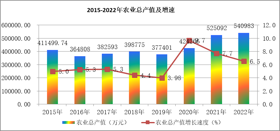 全年精河县地方农林牧渔业总产值实现54.1亿元,同比增长6.5%,其中:农业总产值41.79亿元,同比增长6.7%,林业总产值实现0.69亿元,同比下降5.4%,牧业总产值实现7.5亿元,同比增长3.9%,渔业总产值实现0.04亿元,同比下降24.3%,农林牧渔服务业总产值实现4.08亿元,同比增长13.4%。