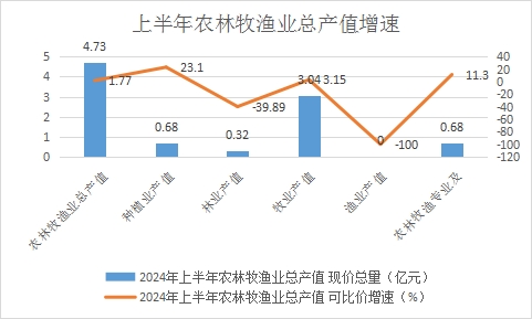 一、上半年有收获的蔬菜面积、苜蓿面积同比增加使种植业产值增长稳中有进。上半年种植业生产主要以温室大棚蔬菜及房前屋后蔬菜、食用菌、苜蓿、瓜果等作物产品产量为主,蔬菜及食用菌产量4683.2吨,同比增长7%。其中,蔬菜产量4626.2吨,同比增长6.8%;食用菌产量57吨,同比增长29.5%;苜蓿首次收割产量13248吨,同比大幅增加,瓜果产量也同比增加。