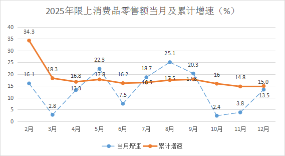 今年以来,全县坚持稳中求进工作总基调,积极应对各类风险挑战,创新开展多层次促消费活动,有效激发了县域市场活力。2025年,全县消费品市场保持良好增长态势,社会消费品零售总额实现12.2亿元,同比增长8.3%,其中:限额以上单位消费品零售额实现3.53亿元,同比增长15%;12月当月实现0.31亿元,同比增长13.5%。