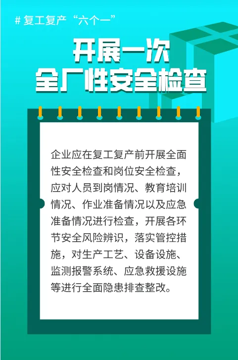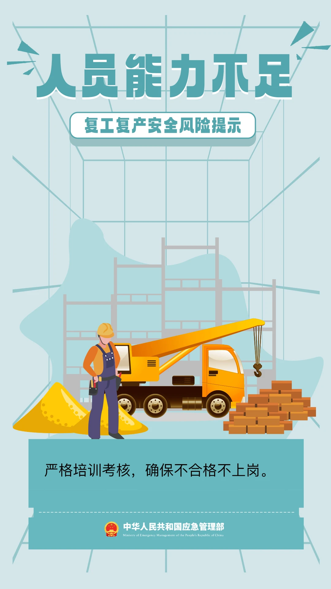 春节假期已经结束。企业陆续迎来复工复产,复工复产阶段历来是安全生产关键期,事故易发期假期后设备开停车,员工思想松懈等叠加个别企业赶工期,抢进度的强烈意愿极易带“病”生产,风险陡增导致发生安全事故,复工复产要警惕哪些安全风险?企业如何结合自身实际制定安全防范措施?落实节后安全复工复产工作这份安全提示请收好。