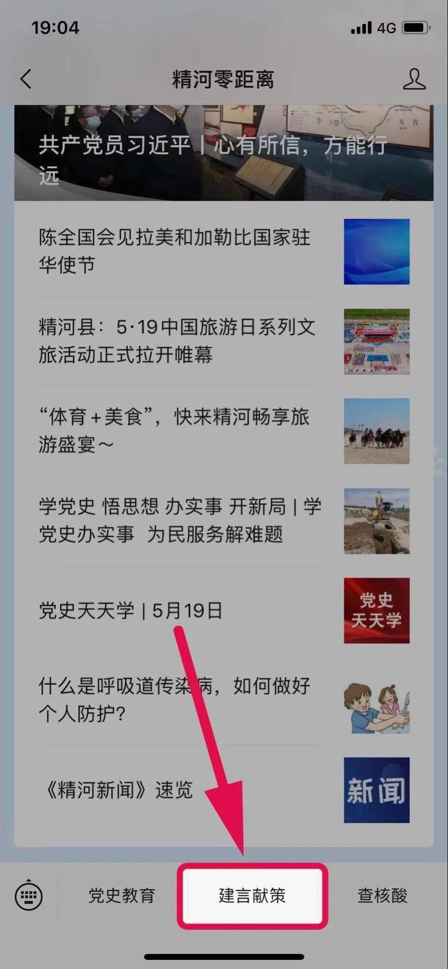 2.关注杞都精河零距离微信公众号,点击左下角“我为家乡献良策”栏目。