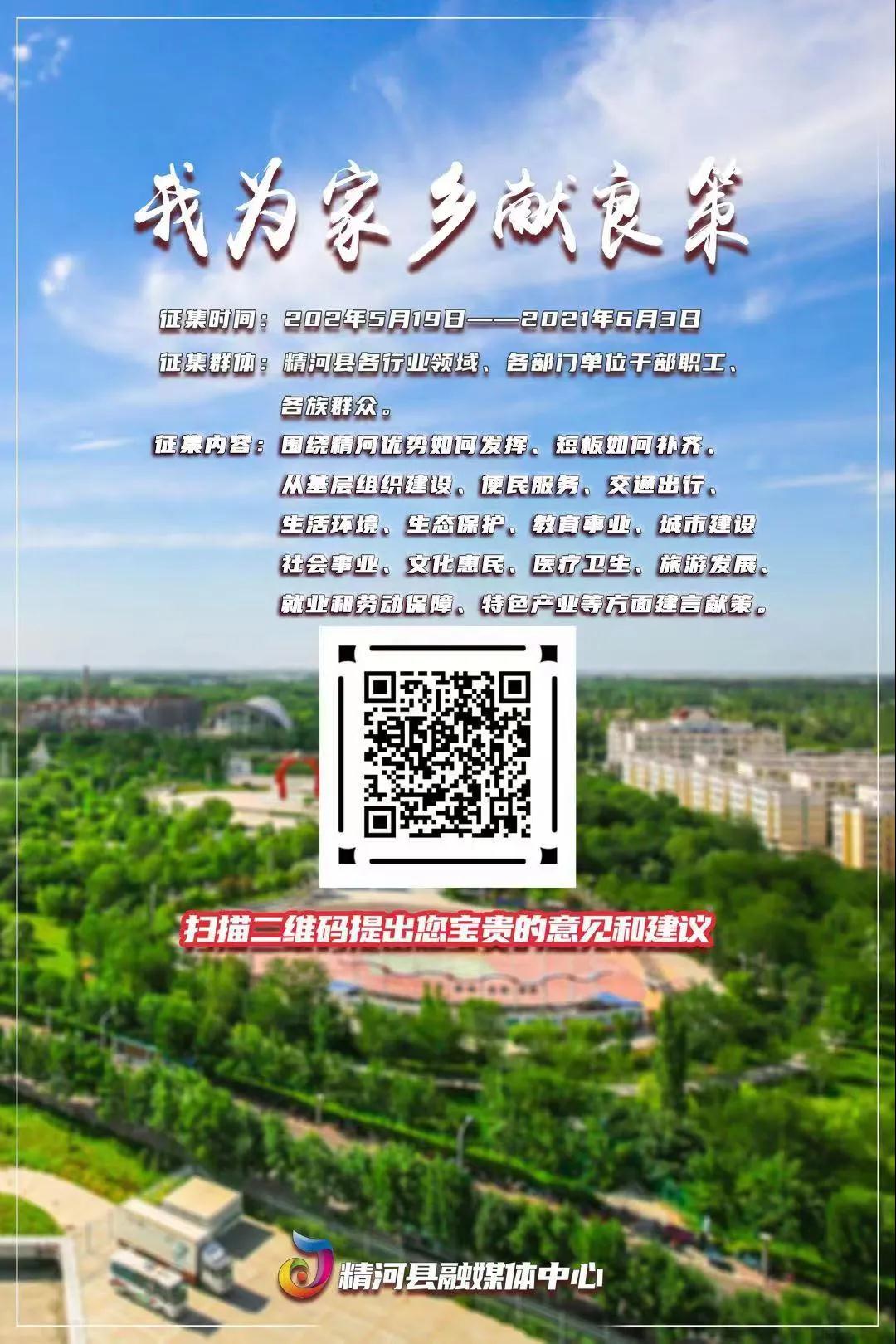 为推动精河县“团结稳县、生态立县、工业强县、旅游兴县”四大发展战略落地落实落细,不断满足人民群众对美好生活新期待,近日,精河县开展“我为家乡献良策”征集活动,邀请全县各行业领域、各部门单位干部职工、各族群众建言献策,为家乡发展贡献智慧和力量,共同推进精河县经济社会高质量发展。网友们可围绕精河优势如何发挥,短板如何补齐,从基层组织建设、便民服务、交通出行、生活环境、生态保护、教育事业、城市建设、社会事业、文化惠民、医疗卫生、旅游发展、就业和劳动保障、特色产业等方面建言献策。