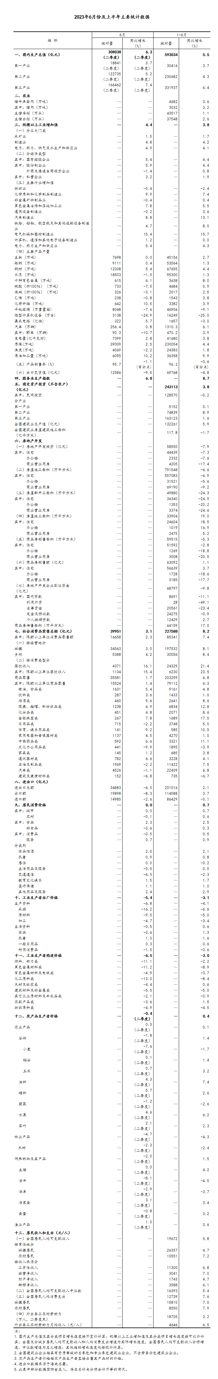 (1)国内生产总值及其分类项目增长速度按不变价计算,规模以上工业增加值及其分类项目增长速度按可比价计算,均为实际增长速度;其他指标除特殊说明外,按现价计算,为名义增长速度。