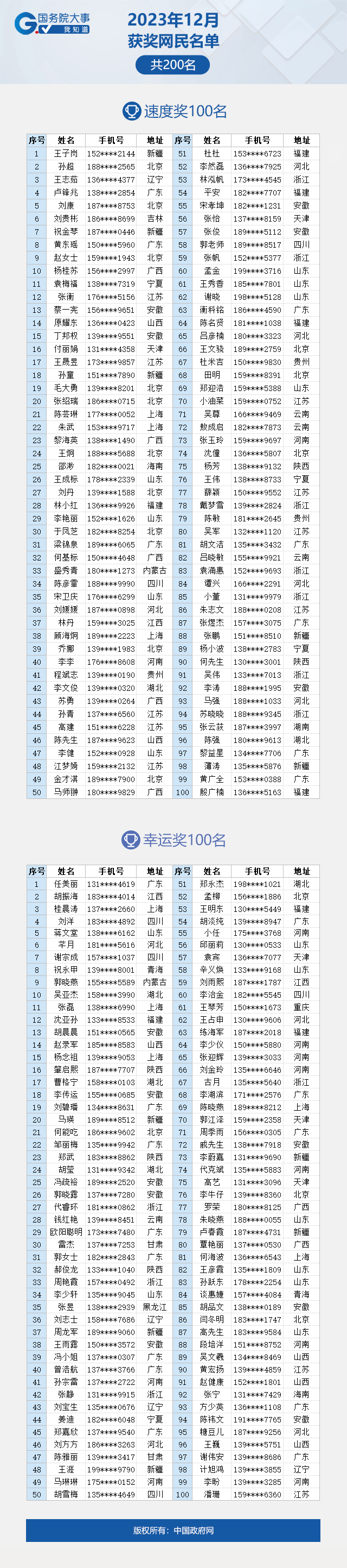 2023年12月“国务院大事我知道”获奖网民名单公布啦!(详见附表)