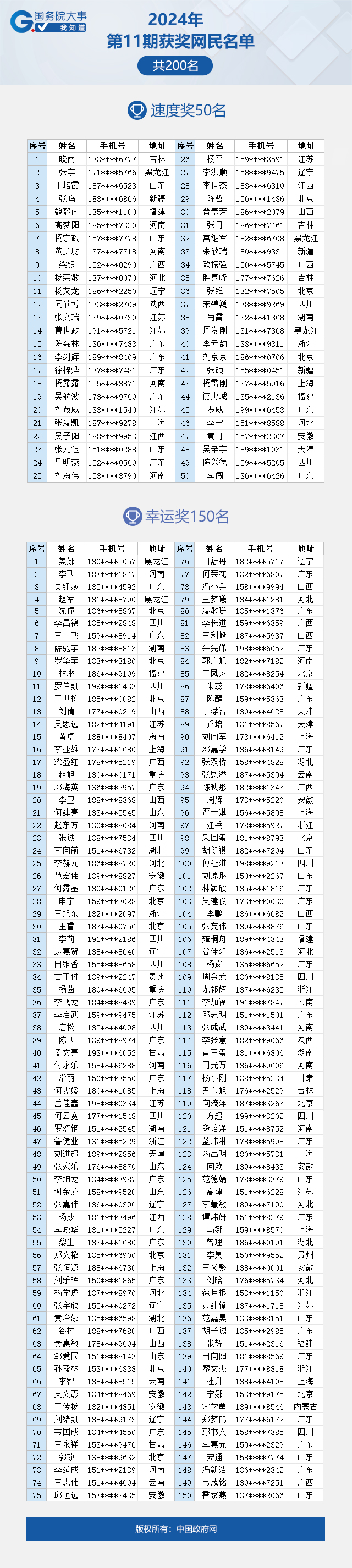 “国务院大事我知道”2024年第11期获奖网民名单公布啦!(详见附表)