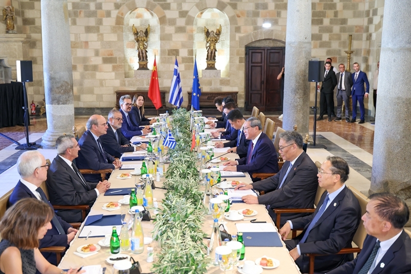 当地时间7月4日下午,国务院总理李强在希腊罗德岛会见希腊副总理哈齐达基斯。新华社记者 刘彬 摄