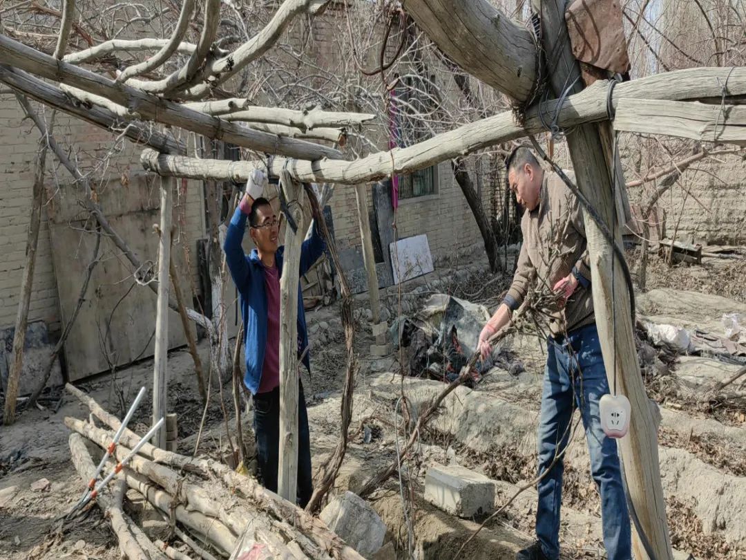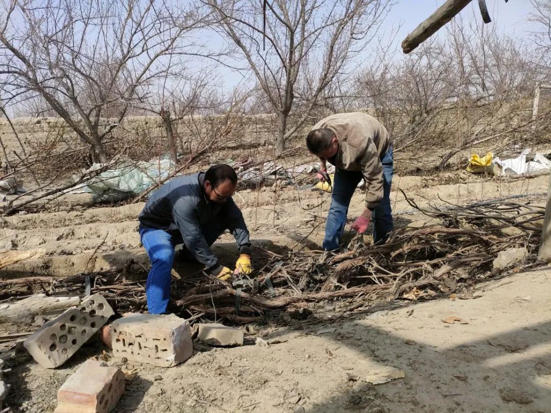 “非常感谢你们的帮助,解决了我的问题,我们约好等到葡萄、无花果、桃子熟了,你们都要来我家吃水果啊!”沙依旦木激动地感谢着大家。原来,皇宫北村十八巷村民沙依旦木年龄较大,老公去世,子女在外就学,目前一人独居。她想趁着气温回升,把在地上越冬的葡萄藤、无花果树、桃树等果树从土里挖出来,并搭上葡萄架,为葡萄等果树生长做好充足准备。可是自己一人体力有限,做不了这么繁重的工作。沙依旦木的结对亲戚、县党委政法委一级主任科员罗慧东了解到该情况后第一时间对接皇宫北村“访惠聚”工作队和村“两委”一同帮助她解决困难诉求。