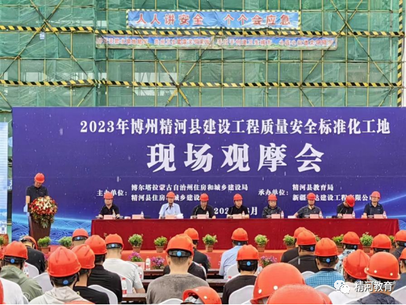 夏季是建筑施工的黄金期,也是安全事故的高发期。为全面提升全县建筑安全生产和文明施工管理水平,积极引导企业创建安全标准化示范工地,6月25日,在精河县第四中学项目建设工地组织召开2023年博州精河县建设工程质量安全标准化工地现场观摩会,此次活动由自治州住建局主办,精河县住建局承办,精河县教育局协办。各县市住建局及80余家建筑企业、监理企业190余人参加了学习观摩。