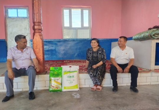 在古尔邦节来临之际,为把节日问候和祝福及时送到困难群众心中,从精神上和物质上给予更多的关心和帮助,6月28日,州教育局驻阿合其农场农三队“访惠聚”工作队第一书记亚尔买买提带领“六位一体”干部看望慰问了12户家庭困难群众、老党员,为他们送上节日祝福,送去了大米、面粉等慰问物品。每到一户,工作队都会详细了解他们的生产生活情况,仔细询问他们的身体状况以及需要解决的困难与问题,认真倾听他们对工作队的意见和建议,鼓励他们要增强战胜困难的信心,保持乐观向上的心态,照顾好身体。“感谢党和政府对我们的关心爱护,感谢工作队为我们村里所做的一切,古尔邦节还为我们送来了慰问品,再次感谢工作队!”困难户阿力木·马木达浑说道。通过走访慰问和面对面、心贴心的交流,群众与工作队的心与心更近了,情与情更亲了,随着节日的祝福、温暖深入群众心中,不仅有效营造了温馨的节日氛围,而且拉近了党群干群关系,对进一步维护社会稳定,推进驻村工作开展起到了积极作用。州教育局驻阿合其农场农三队“访惠聚”工作队第一书记亚尔买买提表示,“全心全意为人民服务”是党的宗旨,也是我们工作队的初心与使命,工作队会把群众的信任和支持化为责任和动力,创造条件,充分发挥后盾单位的作用,为群众多办实事、多办好事。