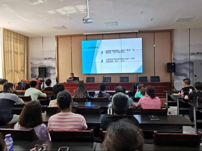 为提升全县文化市场规范化管理水平,提高文化市场经营单位依法依规经营意识,更好的维护文化市场秩序,不断提升群众的获得感、幸福感和安全感,7月6日下午,精河县文化市场综合行政执法队开展文化市场守法和安全经营法律法规知识培训,精河县互联网上网服务营业场所、歌舞游艺娱乐场所、出版物经营单位、印刷企业、文化艺术类校外培训机构和旅行社等场所的50余位法定代表人参加了此次培训。