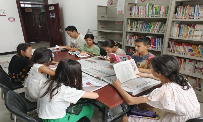 东庄村开展“石榴籽服务站”暑期儿童科普阅读活动,活动在大学生志愿者侯宇豪的带领下,孩子们来到东庄村图书阅览室,根据自己的爱好和需求认真挑选书籍,并安静的阅读。志愿者耐心的陪伴孩子们,并引导帮助孩子在阅读的同时从书中学习知识。现场孩子们积极参与读书活动,互相交流读书体会。侯宇豪为前来参加活动的孩子们推荐了图书室中华优秀传统文化书籍、科普图书及少儿读物,孩子们诵中华经典,同经典相伴。一首首古典诗词,一篇篇经典寓言,孩子们诵读流畅,展示了良好的精神面貌,感受文字之美,享受读书之乐。