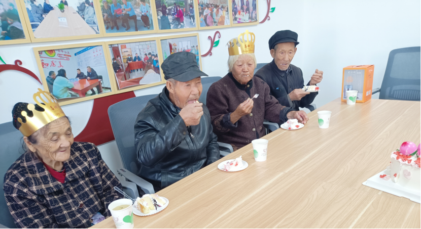现场烛光燃起,大家为在场年长的老人戴上生日帽,志愿者们缓缓唱起生日歌,而后,大家分享蛋糕,互道祝福,将喜悦传递,老人们心里也如蛋糕一样甜甜蜜蜜。