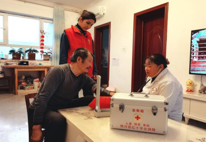 “高血压、关节炎,这些都是老年人的常见病,平时一定要注意吃药控制、避寒保暖、适量运动……”红十字会的医务人员耐心地给每位老人测血压、听心率,听老人讲述自己的病症,为一些需要服药的老人开具处方发放药品,并为一些长期服药的老人调整了治疗方案,还指导了老人注意健康的生活方式。
