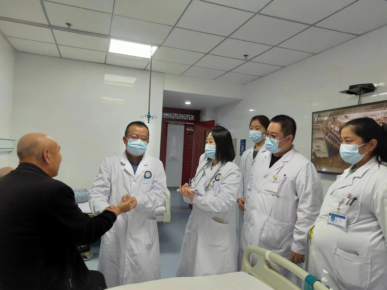 随后,郭主任前往中医科进行疑难杂症带教查房。各管床医生详细汇报患者的病史、目前治疗方案和治疗情况,郭主任仔细检查了患者的身体情况,并结合自己多年的临床经验,从疾病的诊断、用药规范、观察要点、治疗要点等方面与科室医师进行讨论,对患者的治疗方案给出了指导性建议,提高了临床治疗效果。
