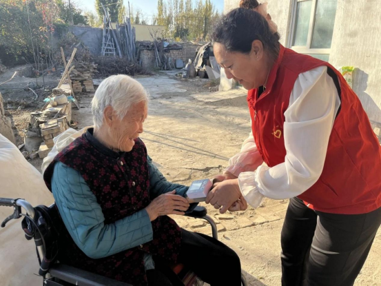 在金秋十月,为大力弘扬中华民族尊老、敬老、爱老、助老的传统美德,同时提高村民对高血压的认识,培养健康生活方式,营造温馨有爱的氛围。10月18日,阿合其农场农八队开展“关爱老年人 义务量血压”志愿服务活动。