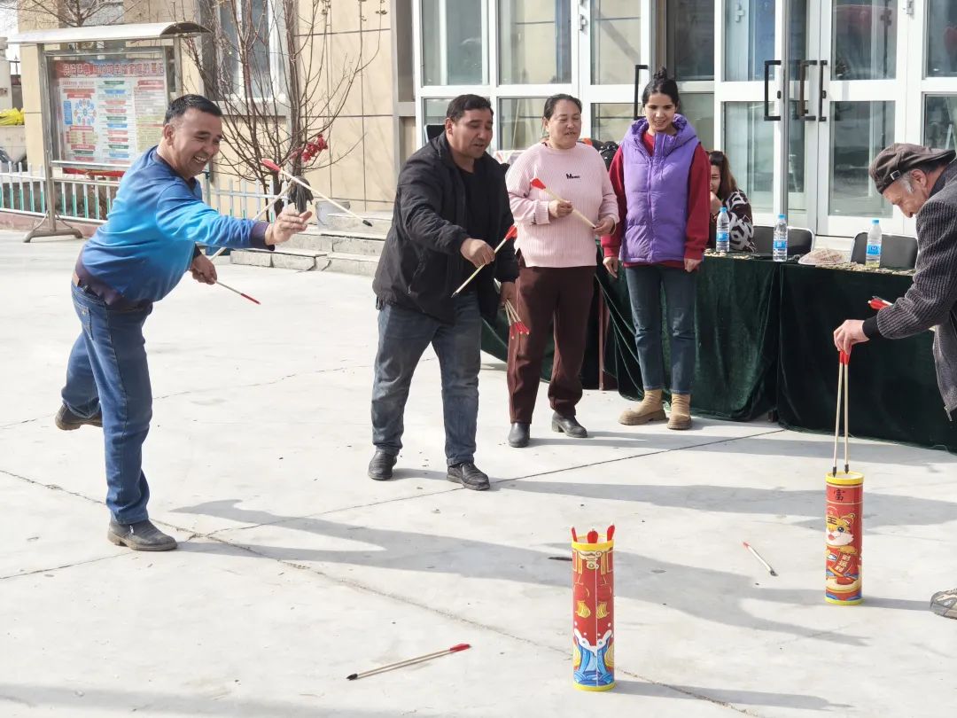 同步开展的北地西村大院则洋溢着欢腾气息。斗鸡场上,两只雄健的公鸡在村民喝彩中振翅交锋;投壶区村民们屏息凝神,箭矢入壶的瞬间引发阵阵欢呼。文化馆的文艺志愿服务队带来的歌舞表演将气氛推向高潮,村民自发加入麦西来甫舞队,彩色艾德莱斯绸巾随律动翻飞,勾勒出团结交融的生动图景。“这些活动既有趣又有温度,村里人都能找到乐子。”村民古丽米热·吐尔逊抱着参与活动赢得的奖品笑道。