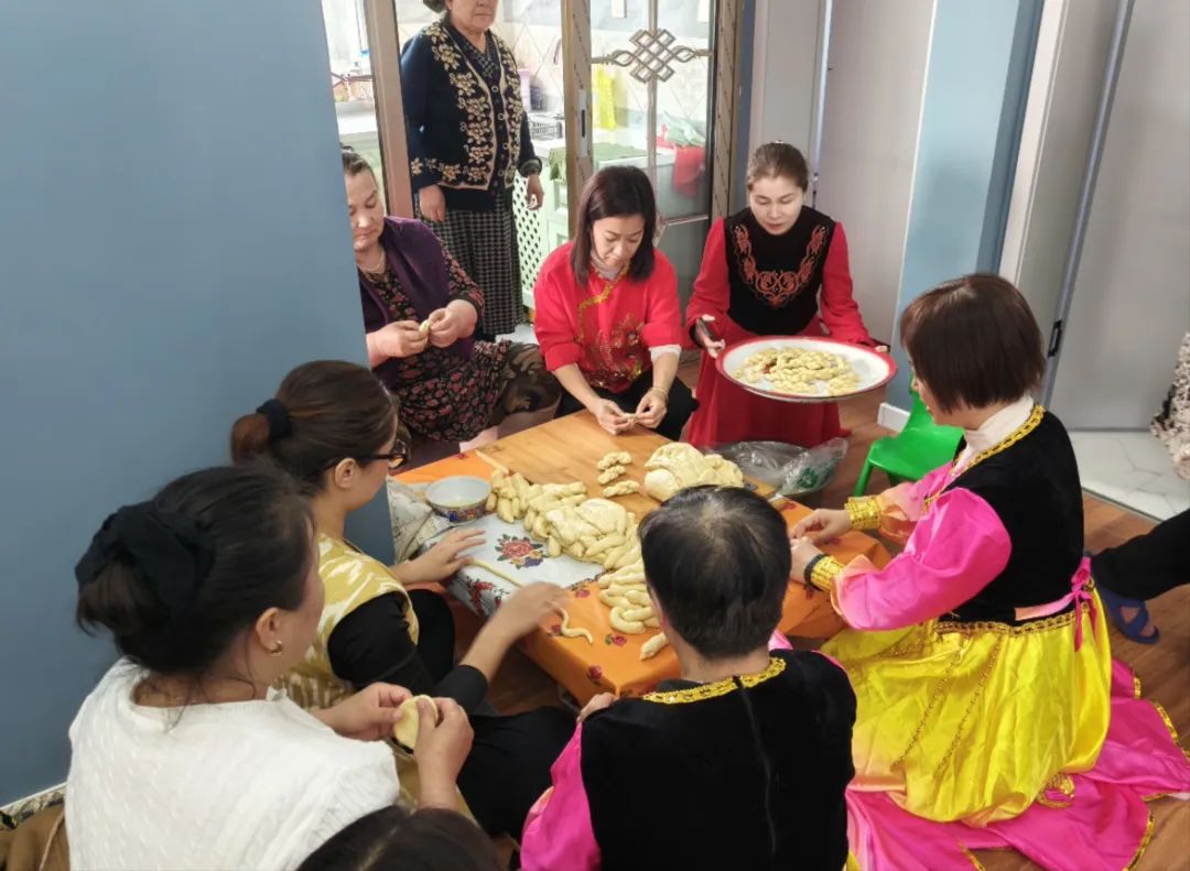 在城关村,面香与笑语交织成一幅温馨画卷。村干部与志愿者身着阿德莱西,围坐在长桌前揉面搓剂,村民阿里娅现场指导大家制作金黄酥脆的馓子。“手腕要稳,剂子要匀,才能炸出漂亮的形状。”随着油锅翻腾,百余根馓子渐次成型。活动特别设置“爱心传递”环节,由村干部带队,与志愿者组成慰问小组,将做好的馓子送至5户困难老人家中。在78岁的独居老人艾合买提·赛买提家中,志愿者不仅送上美食,还帮助打扫庭院、测量血压。“孩子们给我做了炸馓子,干部们也常来家里问需求,这样的贴心服务比馓子还暖。”老人欣慰地说道。