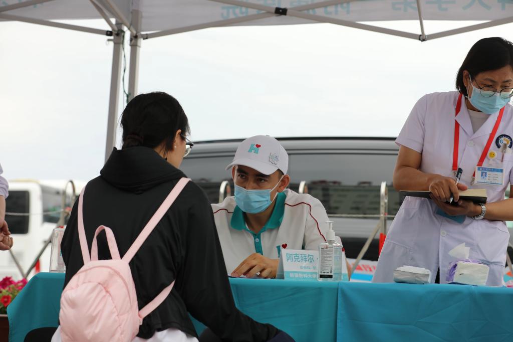 精河县是此次“百人医疗援助”新疆行的第三站,当天医疗团队共为1759人次提供服务,其中核磁、CT、生化、血常规等113人次,超声、心电图、PSA/TCT检查192人次;向381人次免费发放药品,药品数量797单位,后续治疗现场登记14人。