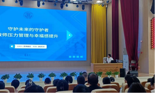在第41个教师节来临之际,为贯彻落实教育部“以教育家精神铸魂强师,谱写教育强国建设华章”的节日主题,8月30日,精河县人民医院心理卫生科医护团队走进精河县第三中学,为全校教职工开展“教师压力管理与幸福感提升”专题辅导活动,以医学力量守护教师身心健康,助力教育工作者轻装上阵、潜心育人。