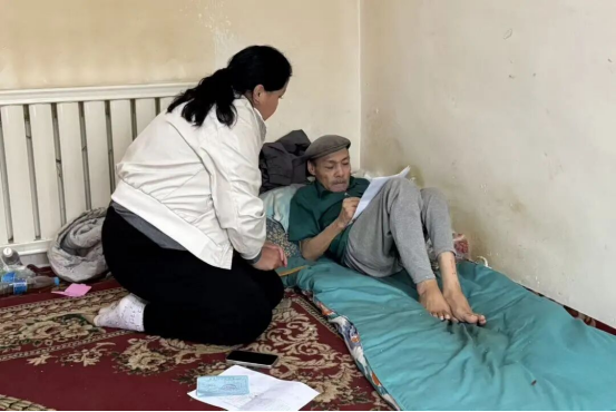 9月18日,阿合其农场劳保所接到农三队居民伊力·麦麦特的求助电话。电话中,这位肢体残疾、常年卧床的老人语气急切——眼看临近退休,却因无法下床,根本没法到劳保所办理养老补费手续,满心担忧会影响退休待遇申领。